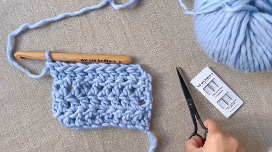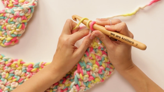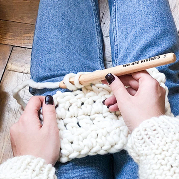Yarn comes in different sizes and qualities, so make sure your yarn is suitable for your project and your hook. We suggest using a bulky or super bulky yarn for beginners, as it will help you seeing the stitches and where to insert the hook.