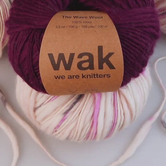 The Wave wool is extremely soft and easy to knit with. Thanks to its peculiar spinning you’ll be able to achieve different thickness throughout the same skein and be able to knit some very unique pieces. Sounds fun!