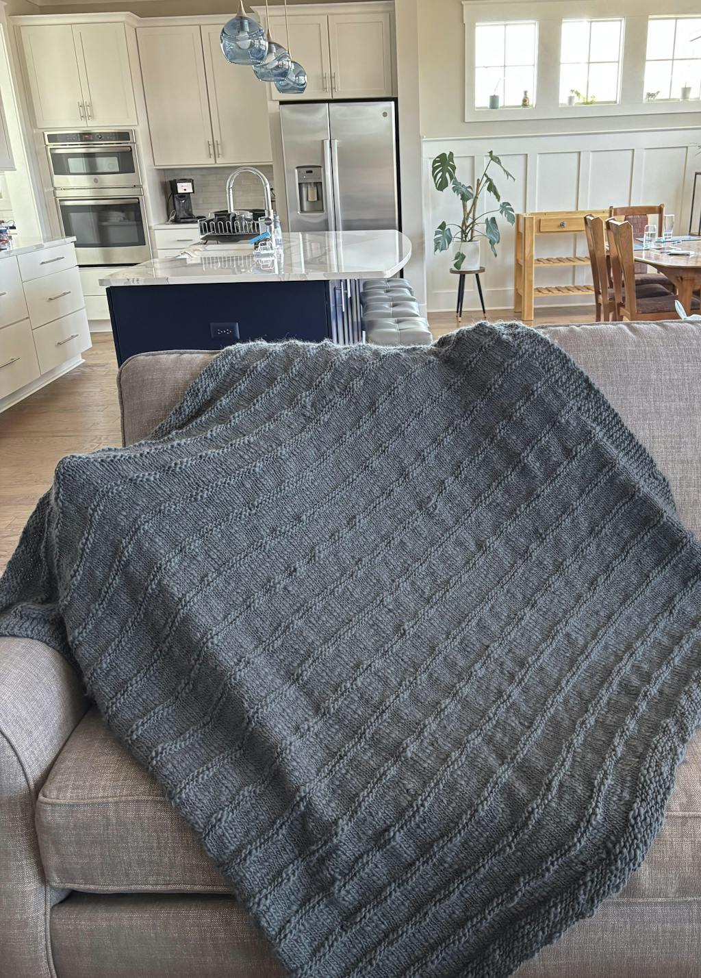 Our Titanium blanket will become your favorite nap buddy! This easy to knit blanket is flat knitted, using a combo of knit stitch and purl stitch. Our Titanium Blanket will be perfect for a cozy little nap! We love knitting and oh we love napping!